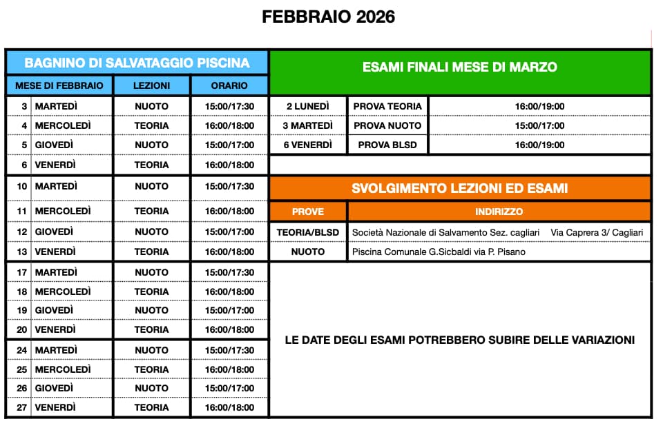 Corso Bagnino di Salvataggio Piscina Febbraio 2026