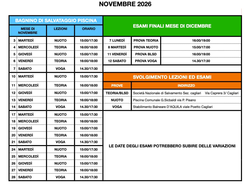 Corso Bagnino di Salvataggio Piscina Novembre 2026